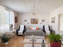 Pinta-alan peruste: Ei tarkistusmitattu. Pinta-alat saattavat tämän ikäisissä kohteissa (rekisteröity ennen 01.01.1992) poiketa olennaisestikin asuinrakennusten nykyisten mittaustapojen ja standardien (SFS 5139) mukaan laskettavasta asuintilojen pinta-alasta. Pinta-ala voi siis olla edellä mainittua pienempi tai suurempi.