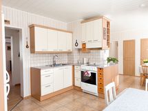 Keittiön varusteet: Liesi, liesituuletin ja jääkaappipakastin. Liesi: Keraaminen liesi.