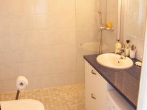 - Suihku, rättipatteri, laattalattia, suihkuseinä, pesukone, seinät laatoitettu isolla laatalla, lattia pienillä. Sadesuihku. Allaslaatikosto, 2 laatikkoa. Kivitaso (tummansininen, missä säihkyy kuin tähtiä).