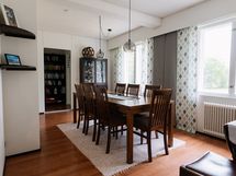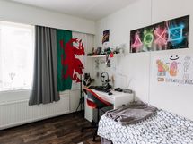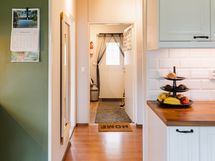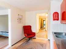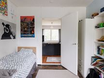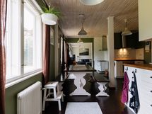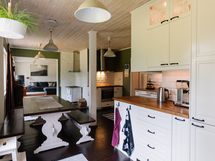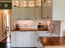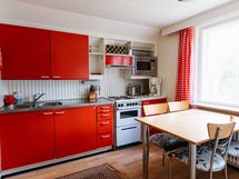 Keittiön varusteet: Jääkaappipakastin, astianpesukone, erillisuuni, liesituuletin ja liesitaso. Liesi: erillisuuni, liesitaso. Työtason materiaali: Laminaatti.