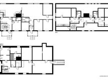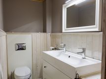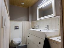 Pesutilojen varusteet: Pesukoneliitäntä, peilikaappi, suihku, suihkukaappi ja peili. Pesutilojen kuvaus: kylpyhuoneissa lattiat laattaa ja seinäpinnat kaakelia, saunan yhteydessä olevassa pesuhuoneessa betonilattia ja seinäpinnat maalatut/kaakeloidut. Erillisten WC:n lukumäärä: 5. Erillisen WC:n kuvaus: lattiat laatoitetut, seinät kaakeloidut, osassa peilit ja osassa peilikaapit.