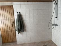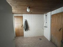 Varusteet: puukiuas. Seinämateriaali: puuseinä. Lattiamateriaali: laattalattia