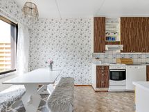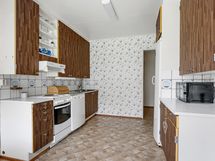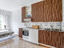 - Keittiön varusteet: Jääkaappipakastin, liesi, liesituuletin ja astianpesukone. Työtason materiaali: Laminaatti.