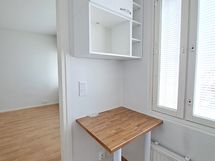 - Pesutilojen kuvaus: Laatoitettu. Peilikaappi, allaskaappi, pesukoneliitäntä.