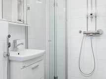 - Suihkuseinä, Suihku, Pesukonevalmius, Allaskaappi, Rättipatteri, Laattalattia, Peilikaappi, Lattialämmitys, Laattaseinä