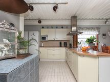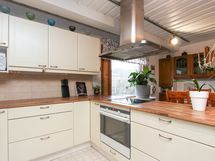 - Varusteet: jääkaappi, pakastin, astianpesukone. Liesi: erillisuuni, liesitaso, liesituuletin. Kaapistot, tasotilaa, puuhella.