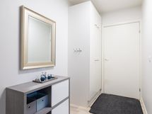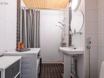 - Kylpyhuone, suihku, peilikaappi, pesukoneliitäntä, kiinteät valaisimet.