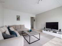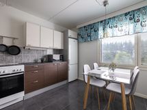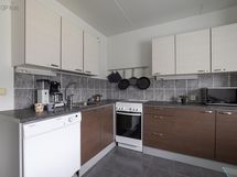 - Jääkaappipakastin, keraaminen liesi, astianpesukone, kaapistot, kiinteät valaisimet.