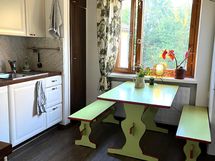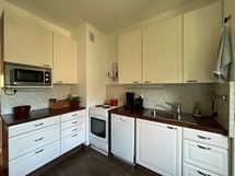 - Jääkaappi, pakastin, sähköliesi, uuni, astianpesukone, kiinteät valaisimet, kaapistot