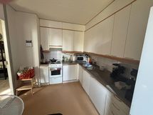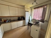 Jääkaappipakastin, lattialiesi, liesituuletin, kaapistot, kiinteät valaisimet.