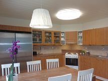 - Jääkaappi, pakastekaappi, sähköliesi, liesituuletin filtterillä, astianpesukone, kaapistot, kiinteät valaisimet