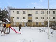- Keittiön varusteet: Jääkaappipakastin, astianpesukone, liesituuletin ja uuni. Liesi: Keraaminen liesi. Työtason materiaali: Laminaatti. Keittiön yhteydessä olohuone, josta kulku lasitetulle parvekkeelle.