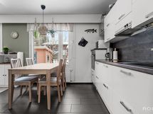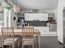 - Varustus: Induktioliesi, Liesituuletin, Uuni, Hana, Kaapisto, Allas, Astianpesukone, Jääkaappi, Pakastin