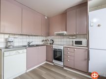 Jääkaappipakastin, sähköliesi, astianpesukone, kaapistot, kiinteät valaisimet.