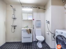 Kylpyhuone, suihku, allaskaappi, pesukoneliitäntä, kiinteät valaisimet.