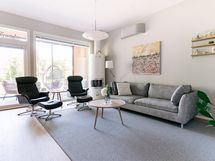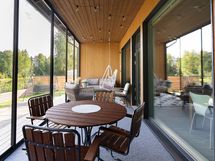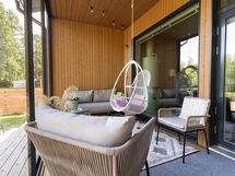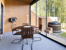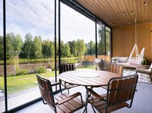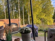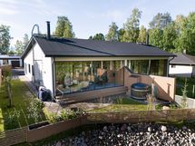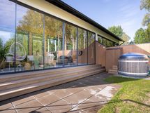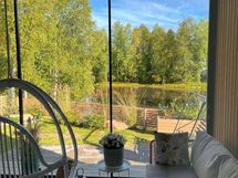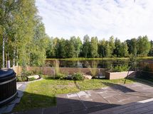 - Upea, iso, lasitettu terassi takapihalle, lammelle päin. terassin vieressä takapihalla puulämmitteinen palju. Käynti suoraan kodinhoitohuoneesta. Täydellistä omaa rauhaa.