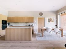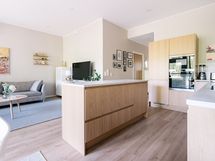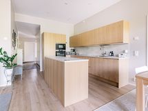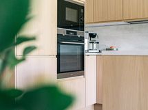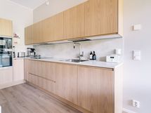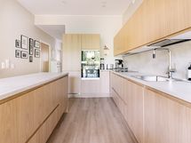 - Keittiön varusteet: Jääkaappi (korkea), erillinen pakastin, erillisuuni, mikroaaltouuni, astianpesukone, liesituuletin ja keittiösaareke. Liesi: Induktioliesi. Työtason materiaali: Laminaatti. Avara, kaunis ja laadukas Puustelli -keittiö, jossa paljon säilytys- ja laskutilaa. Integroidut koneet.