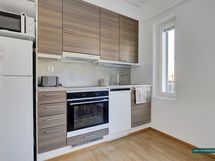 Liesi: integroitu, erillisuuni. Työtasot: laminaatti. Kylmäsäilytys: jääkaappi/pakastin. Varustus: liesituuletin.