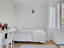 Lattia: Keittiössä: laminaatti. Erillisessä WC:ssä: laatta. Olohuoneessa: laminaatti. Makuuhuoneessa: laminaatti. Seinät: Keittiössä: kaakeli, maalattu. Erillisessä WC:ssä: kaakeli. Olohuoneessa: maalattu. Makuuhuoneessa: maalattu.