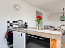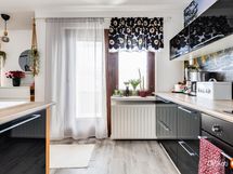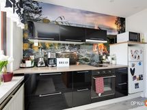 - Jenkkikaappi, erillisuuni, keraaminen liesi, liesituuletin, astianpesukone, kaapistot, kiinteät valaisimet. vinyyli, seinät maalattu