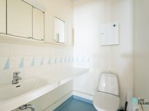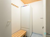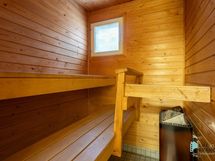 - Sauna, sähkökiuas, kylpyhuone, erillinen wc, suihku, peilikaappi, pesukoneliitäntä, lattialämmitys (pukuh, kph, sauna ja wc), kiinteät valaisimet.