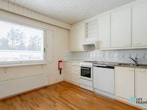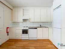 - Jääkaappipakastin, sähköliesi, liesituuletin, astianpesukone (noin kolme vuotta vanha), kaapistot, kiinteät valaisimet.