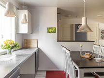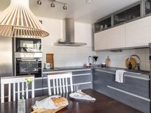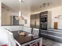 - Festivo kylmiö (jääkaappi, pakastin), integroidut kiertoilmauuni ja mikroaaltouuni, induktiokeittotaso, liesituuletin / liesikupu (poistopuhallin katolla), astianpesukone, kaapistot (Petra-keittiö), laminaattilattia, seinät maalattu. Tiskiallas uusittu 2026 ja hana uusittu 2020. Keittiö remontoitu edellisen omistajan toimesta 2017.