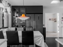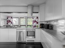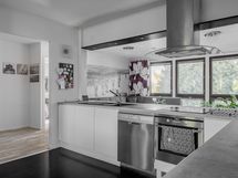 - Jääkaappi 2023, pakastekaappi 2023, erillisuuni, induktioliesi, liesituuletin Haitarikanavan vaihto ja eristys 2020, astianpesukone 2022, kaapistot, kiinteät valaisimet, pöytätasojen materiaali laminaatti. 2020 uusittu keittiön ovet ja osa kaapistoista