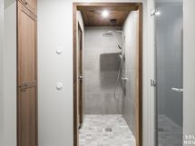 Seinät kipsilevy/erotettu hirsirungosta koolauksella/-kaakelit.