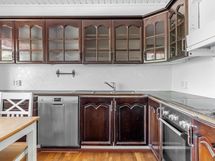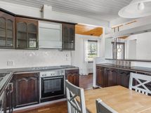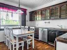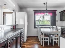 - Talon keittiössä on jääkaappi, pakastekaappi, erillisuuni, keraaminen liesi, liesituuletin, astianpesukone ja kaapistot.