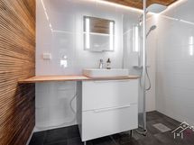 - Pesutilojen kuvaus: Ikkunallisessa kylpyhuoneessa/wc:eessä on sadesuihku, hyvinvointisuihku (kylmä/kuumahoitoja), suihkuseinä, seinäwc, sähköinen pesukoneventtiili, allas, allaslaatikot, hana, peili valolla, Pax kosteudenpoistaja/sähköinen tuuletin ja pyyheteline. Käyttöveden jakotukit katossa. Seinät on laatoitettu ja yksi seinä on sormipaneelia.