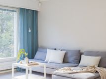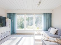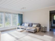 - Olohuone: katon maalaus, seinien maalaus, laminaatti (alla mosaiikkiparketti ja solumuovi), listat,