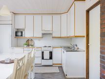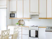 - Liesi: sähköliesi. Työtasot: laminaatti. Kylmäsäilytys: jääkaappi, pakastin. Varustus: liesituuletin, astianpesukone, kiinteät valaisimet.
