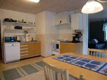 - Jääkaappi, pakastekaappi, lattialiesi, sähköliesi, liesikupu painovoimainen, astianpesukone, kaapistot, kiinteät valaisimet, pöytätasojen materiaali Levy.
