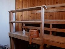 - Sauna, puukiuas, kylpyhuone, erillinen wc, suihku, peilikaappi, kaapit, allaskaappi, pesukoneliitäntä takkahuone, lattialämmitys kylpyhuone, kiinteät valaisimet. Kylpyhuone, sauna alkuperäisessä kunnossa. Kiuas uusittu.
