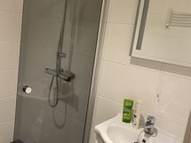 Varusteet: peilikaappi, pesukoneliitäntä, suihku