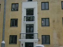hykset. Huoneisto-ovet puumassaa. Rakennuksen ulko-ovet puuta tai metallia. Yleisten tilojen betonilattiat, seinät ja katot maalattu. Eri tilojen väliovet puuta tai metallia. Muuratut seinät ja puuovet kellarikomeroissa. Ullakkokomeroissa kananverkkoseinät, ovet puulautaa.