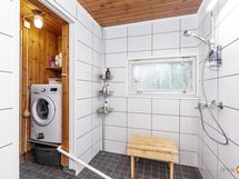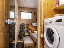 Pesu- ja saunatilat ovat remontoitu hiljattain. Erillinen ikkunallinen wc on käytännöllisesti keskellä kotia.