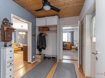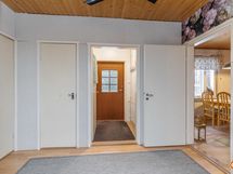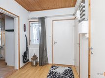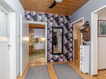Sisääntulo on kätevästi pääovelta tilavaan aulaan tai kuratassuilla toisesta sisäänkäynnistä pesuhuoneeseen.