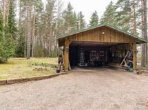 Autotalli talon yhteydessä sekä erillinen kahden auton autokatos mahdollistavat monenlaisen nikkaroinnin ja puuhastelun.