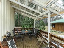 Tämä hyvinhoidetun mäntypuustoisen kangasmetsän suojassa sijaitseva, kahden tilavan makuuhuoneen koti, muuntuu helposti pariskunnan tai lapsiperheen kodiksi.