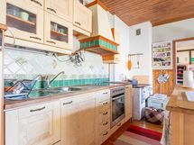 Jääkaappi/pakastin, keraaminen sähköliesi, puuhella, astianpesukone.