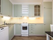 - Liesi: sähköliesi. Työtasot: laminaatti. Kylmäsäilytys: jääkaappi/pakastin. Varustus: liesituuletin, astianpesukone, kiinteät valaisimet.
