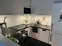 Työtason materiaali: Kivi. Jää-/pakastekaappi, induktioliesitaso, ulosvedettävä