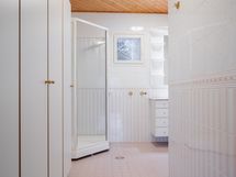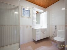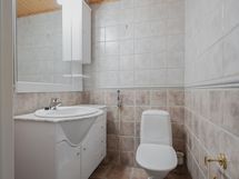 - Pesutilojen varusteet: Lattialämmitys, suihku ja pesuallas. Pesutilojen kuvaus: Yläkerrassa kph/wc (yksi suihku) ja alakerrassa kph (kaksi suihkua). Erillisten WC:n lukumäärä: 2. Erillisen WC:n varusteet: Lattialämmitys. Erillisen WC:n kuvaus: Alakerrassa erillinen wc ja yläkerrassa kph/wc.