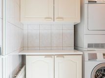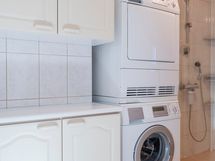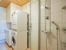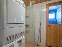 - Pesutilojen varusteet: Pesukoneliitäntä. Pesutilojen kuvaus: Kylpyhuoneessa suuri suihkukaappi, jossa kokoontaitettavat kaarevat seinät. Erillisten WC:n lukumäärä: 2. Erillisen WC:n kuvaus: Kaksi erillistä wc:tä, joissa uusitut kaapistot ja peilit.