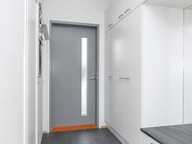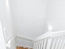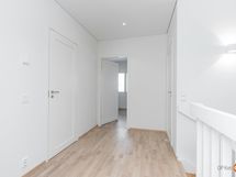 Huoneiden sisäovet ovat tyylikkäät kehysovet mattasatiinipainikkeilla, sälekaihtimet asennettu kaikkiin ikkunoihin ja katossa sekä portaikossa kiinteät led-valaisimet. Porrasaskelmat niinikään parkettia.