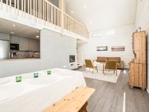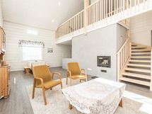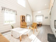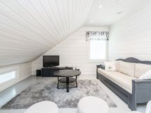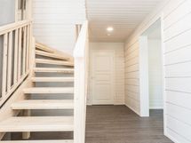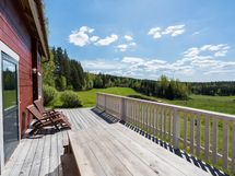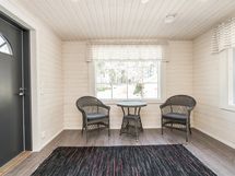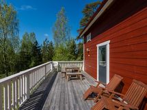 - Tilava, lehtikuusesta tehty terassi (3,4x8,60 m), johon paistaa aurinko koko päivän. Terassi avautuu etelään.