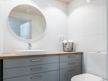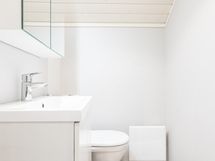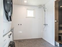- Pesutilojen varusteet: Suihku, pesukone, kuivausrumpu, pesukoneliitäntä, lattialämmitys ja pesuainekaappi. Pesutilojen kuvaus: Tilava pesuhuone ja voi asentaa lisää kaappitilaa. Pesuhuoneessa on ikkuna. Erillisten WC:n lukumäärä: 2. Erillisen WC:n varusteet: WC-istuin, lattialämmitys (alakerran wc:ssä, yläkerran wc:ssä on seinäpatteri), peilikaappi (yläkerran wc:ssä), peili (alakerran wc:ssä), pesuallas, allaskaappi ja bidee-suihku. Erillisen WC:n kuvaus: Erilliset wc:t molemmissa kerroksissa.