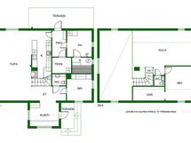 - Pinta-alan peruste: Ei tarkistusmitattu. Pinta-ala voi siis olla edellä mainittua pienempi tai suurempi. Pinta-ala perustuu rakennuslupapiirustuksissa olleeseen tietoon.